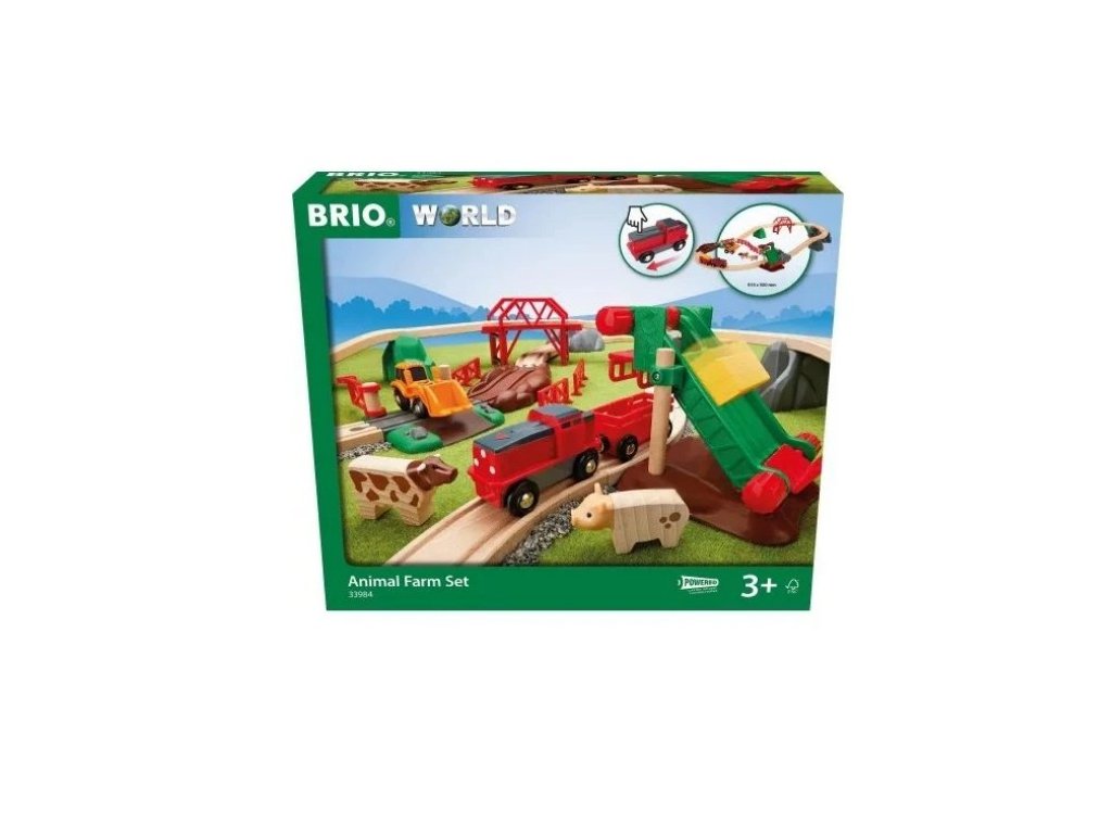 Železniční sada Brio Farm je krásná sada 30-prvotních staveb pro děti. Batole staví a používá železniční trať umístěnou v klidném venkovském prostředí. Rychlost trasy na kolejích byla navržena pro malé děti. Je vybaven pohodlnou funkcí „Touch and Go“. Stačí stisknout šipku v přední lokomotivě pro spuštění nebo vypnutí motoru.