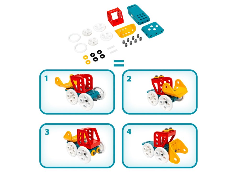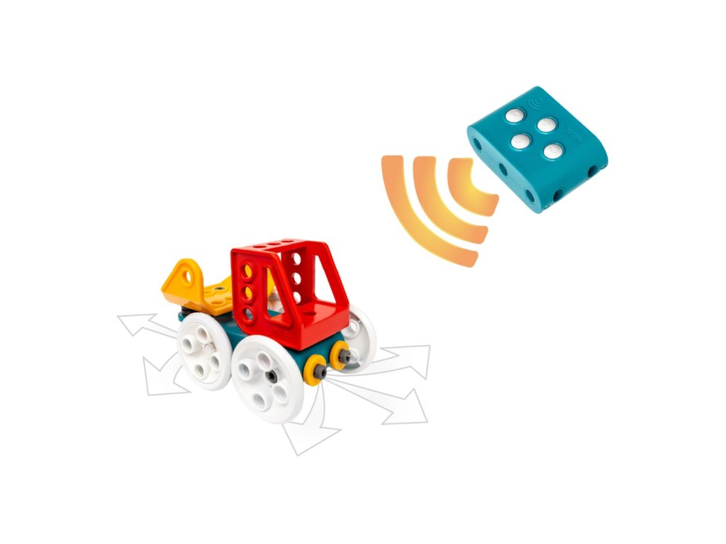 Postavte karoserii auta kolem motorové jednotky, připevněte kola a poté uchopte ovladač. Díky rozšiřitelnému designu BRIO Builder lze toto dálkově ovládané auto upravit podle vašich představ a lze jej také přidat k vašemu stávajícímu BRIO Builder.