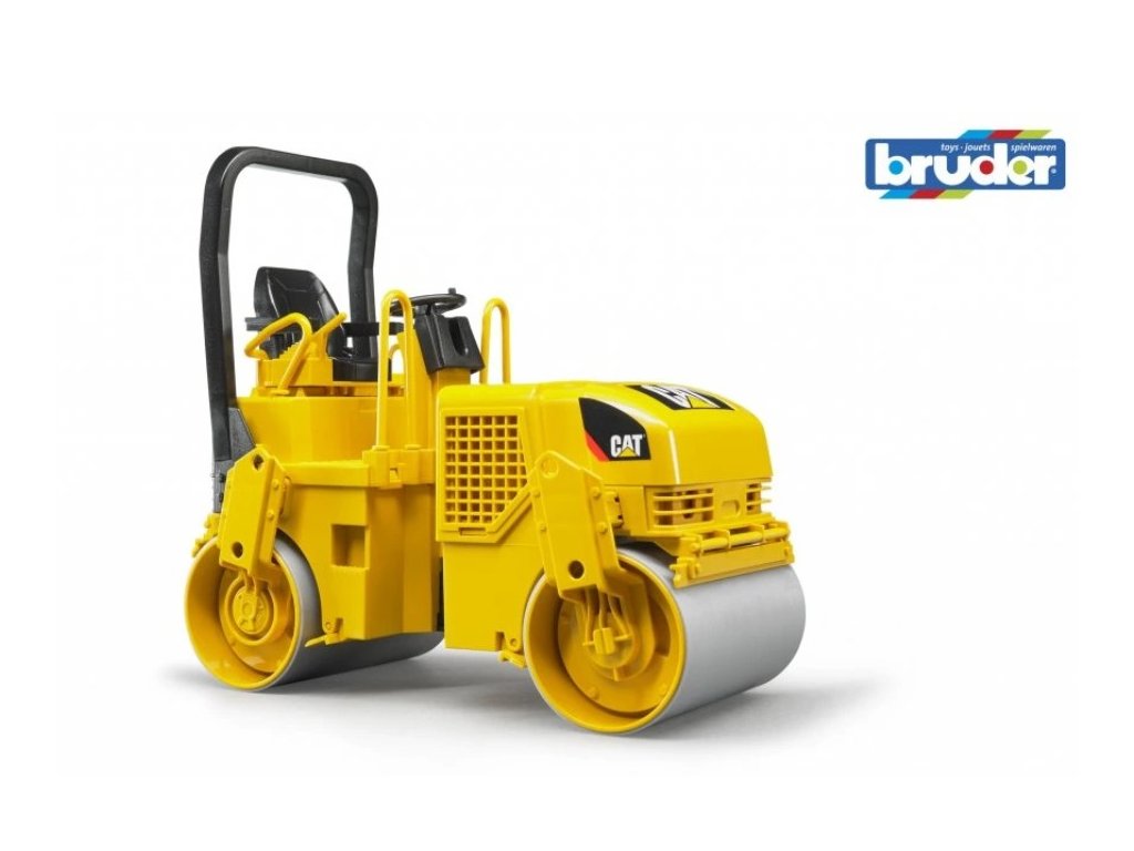 BRUDER 2433 - Vibrační válec CATERPIILAR je stroj na úpravu chodníků nebo malých komunikací. Válec je vybaven funkčním volantem a nesmí chybět na žádném staveništi!
