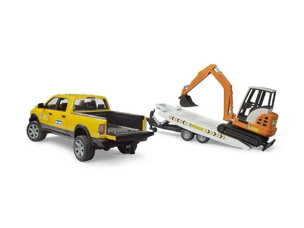 Robustnost a tažná síla vozů RAM je úžasná. Hračka je stejně jako její velký vzor vybavena 4-dveřovou kabinou. Všechny dveře lze otevřít a nabízejí prostor až pro 4 figurky bworld. Pro jízdní pohodlí a průchodnost terénem je tento model v měřítku 1:16 vybaven odpruženými nápravami, přičemž přední náprava je řiditelná pomocí přiloženého volantu. Dveře zavazadlového prostoru lze otevřít pro přepravu nákladů během hry a ložná plocha nabízí prostor pro palety BRUDER, boxy nebo balíky slámy. Přiložený přívěs má podpěru pro oj a plošinu lze naklápět pomocí páky pro snadné nakládání.