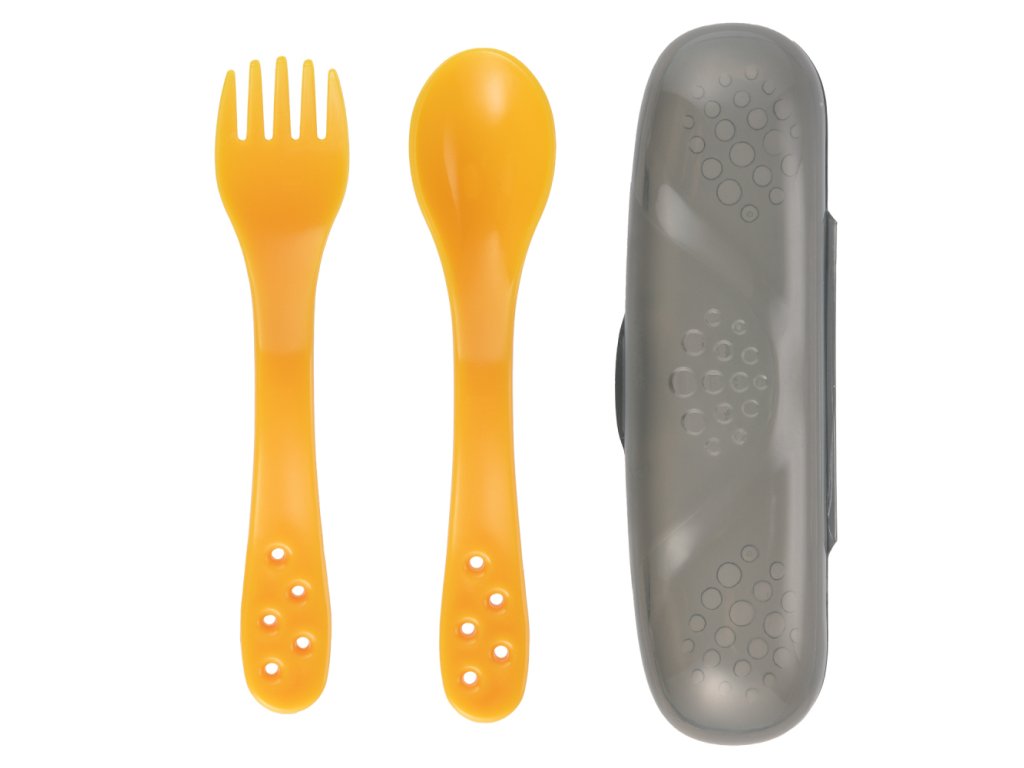 Sada příborů ideální pro krmení batole a učení se jíst samostatně. Vyrobeno z bezpečného materiálu bez obsahu BPA. Zaoblené hrany lžiček nedráždí dásně. Příbory jsou uloženy v praktickém pouzdře, které vám umožní vzít je s sebou na procházku nebo na cestování. Sada zahrnuje vidličku a lžičky. Určeno pro děti od 12 měsíců.