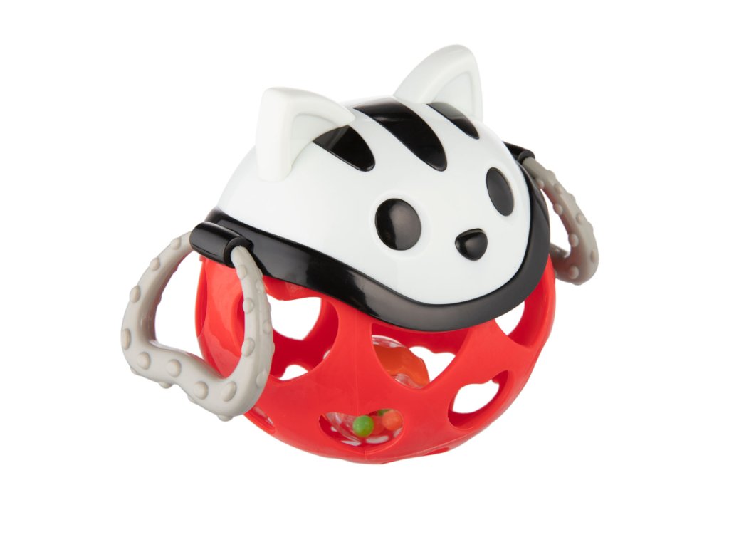 Interaktivní hračka pro rozvoj smyslů dítěte ve tvaru míčku s chrastítkem. Různorodé materiály a výrazné barvy stimulují dětské smysly. Hlavička v designu zvířátka upoutá dětskou pozornost. Elastické materiály a děrované elementy rozvíjí hmat a umožňují jednodušší uchopení. V míčku je umístěno chrastítko. Elastické úchyty s výstupky slouží jako kousátko pro uklidnění při růstu zoubků.