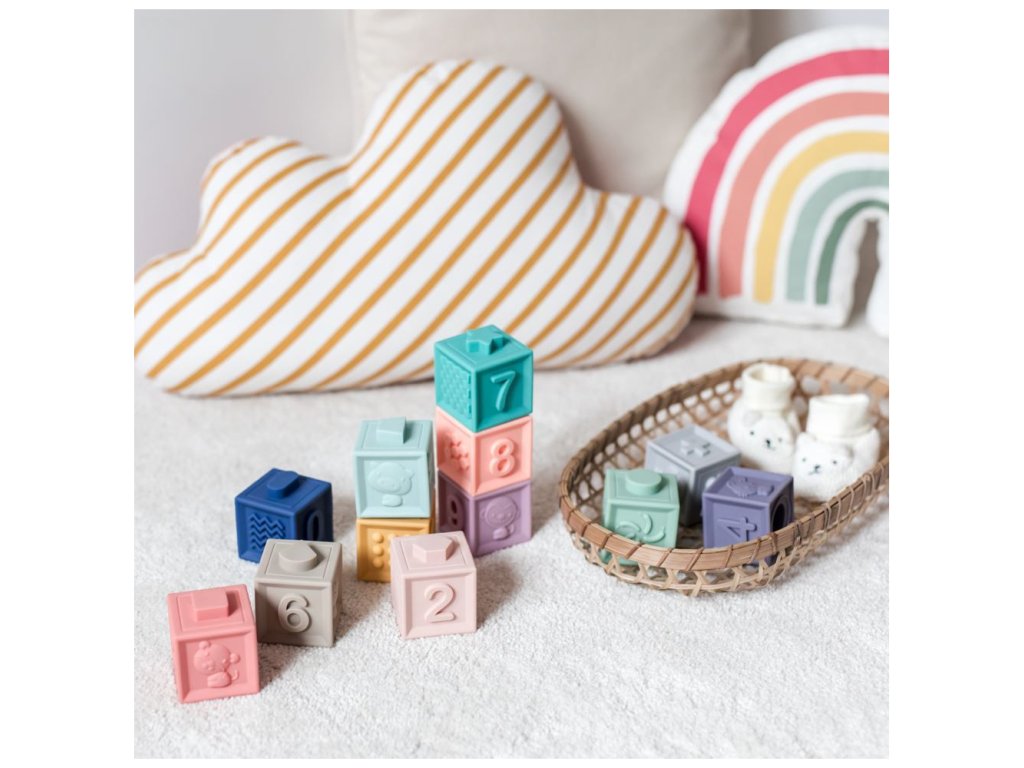 Měkká kostka s barevnými obrázky stimuluje rozvoj smyslů dítěte. Spojení výuky s dobrou zábavou podporuje chuť dítěte poznávat, učit se a zapamatovat si nová slova a předměty. Je vyrobena z bezpečných, hygienicky nezávadných materiálů, snadno se udržuje v čistotě. V balení 12 ks. Kostky neobsahují BPA.
