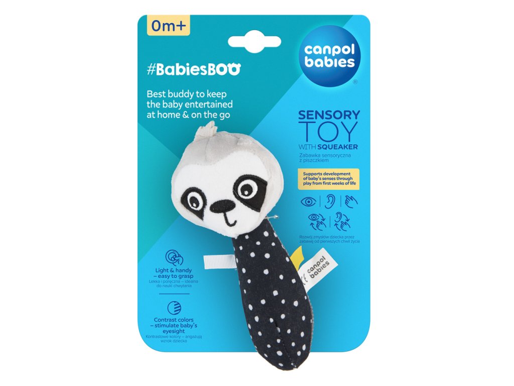 Roztomilá senzorická hračka s pískátkem Canpol babies z kolekce BabiesBoo je skvělým prvním společníkem na procházky a hry vašeho miminka. Hračka je lehká a praktická, ideální pro trénink úchopu. Při zatřesení vydává jemné a příjemné zvuky, při stisknutí pak pískavý zvuk. Příjemný materiál na dotek a roztomilý lenochod v kontrastních barvách přitahují pozornost děťátka, stimulují smysly a podporují jejich rozvoj - zraku, sluchu a hmatu. Všité barevné visačky a různé materiály dále rozvíjí smyslové schopnosti miminka. Senzorická hračka Canpol babies s pískátkem podporuje uchopením a třesením jemnou motoriku děťátka, aktivuje sluch, zrak a hmat - je výbornou volbou pro nejmenší děti.