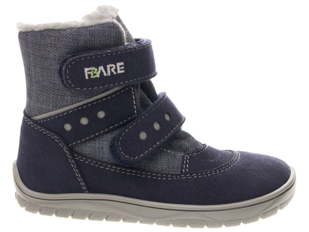FBARE FINKY - zimní štróblovaná polovysoká obuv s membránou a se zapínáním na suchý zip. Našívací (štróblovaná) stélka umožňuje lepší flexibilitu boty. Vrchový materiál: eco vegan kůže v kombinaci s textilem.
