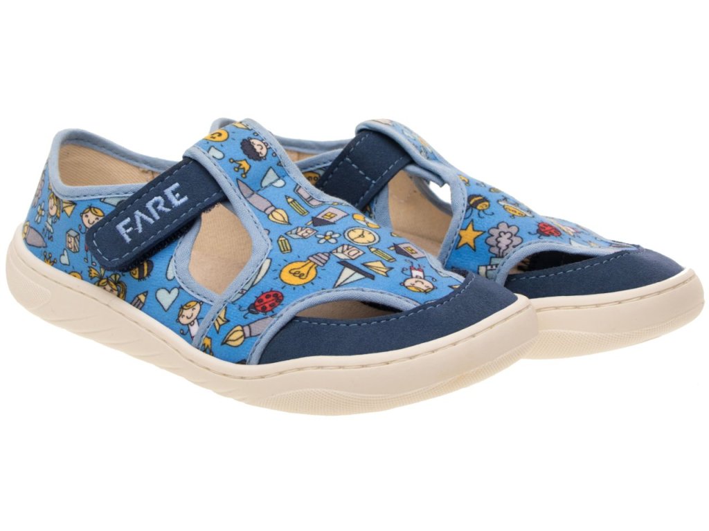 FARE MID-WIDE dětské papuče na suchý zip modré