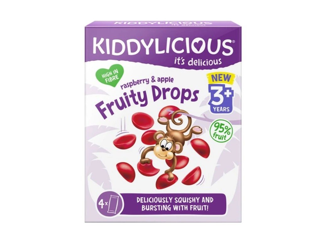 Ovocné želé bonbónky Kiddylicious s příchutí jablka a maliny obsahují 95 % ovoce. Neobsahují lepek, mléko, ořechy ani vejce, a jsou tak ideální chutnou svačinou kdykoliv během dne. Vhodné pro děti od tří let.