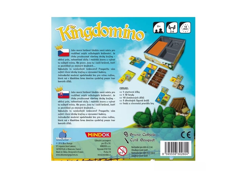 Kingdomino je společenská hra pro celou rodinu, ve které se jako mocní králové vydáváte hledat nová místa pro rozšíření svých velkolepých království. Prozkoumáváte všechny druhy krajiny - obilná pole, nehostinné skály i rozlehlá jezera a vybíráte ta nejlepší místa. Ale pozor! Jsou tu i další králové, kteří se poohlížejí po stejných krajinách.