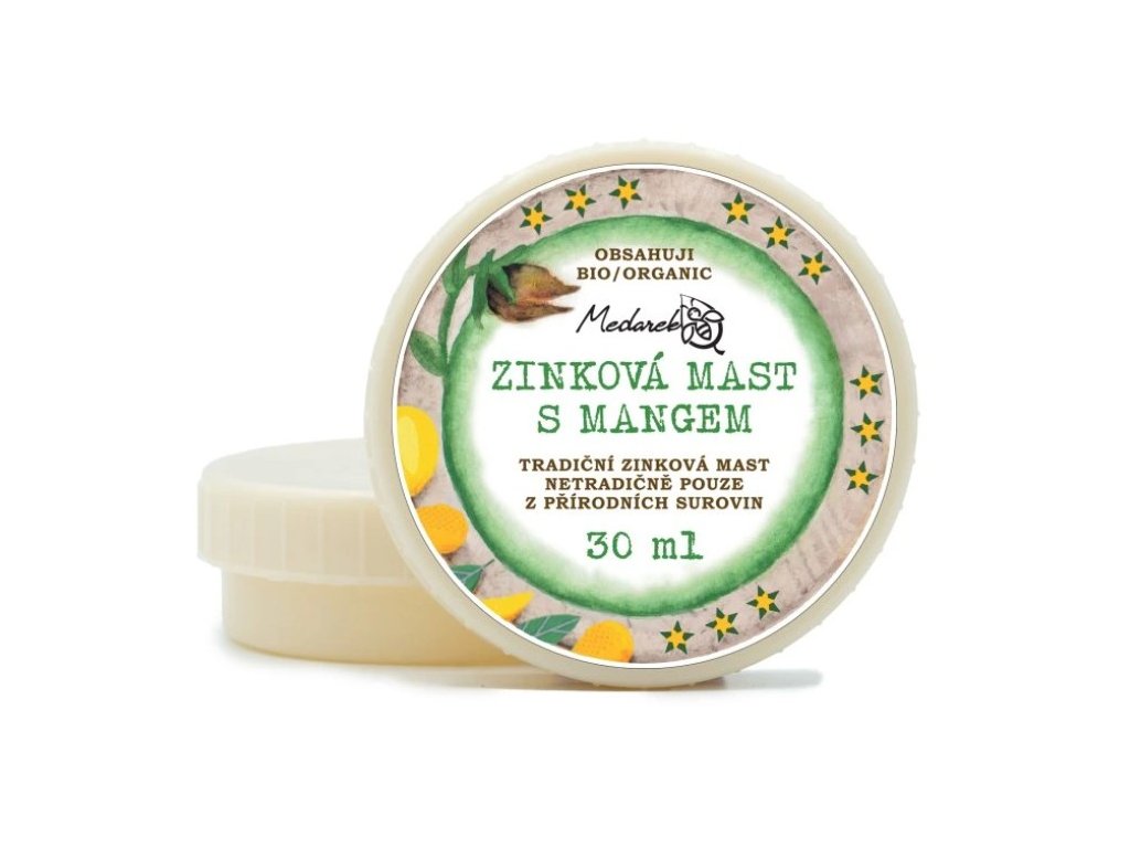 Naše zinková mast v klasické verzi, pouze jsme vyměnili bambucké máslo za mangové. Část zákazníků má totiž alergii na ořechy, která se projevovala i u bambuckého másla.