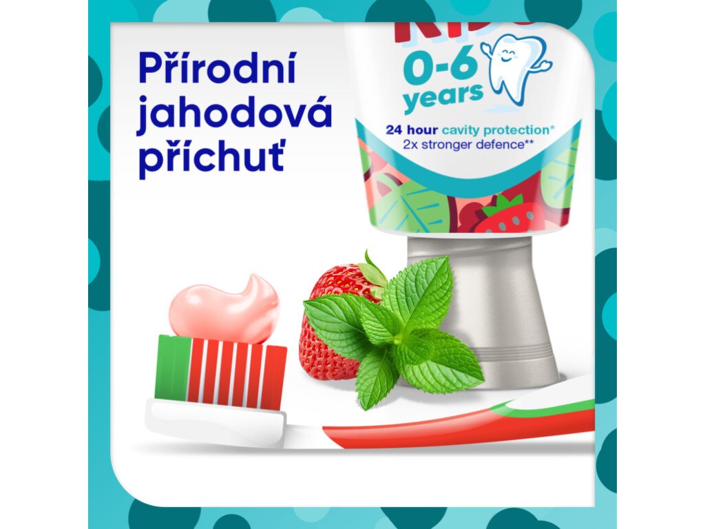 Tato inovativní zubní pasta s přírodní jahodovou příchutí nejen posiluje dětskou zubní sklovinu, ale také aktivně chrání zuby před zubním kazem.