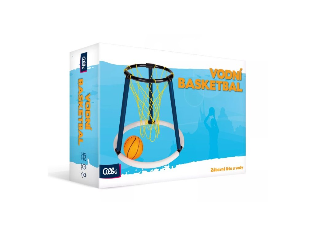 Hra Vodní basketbal obsahuje: plovoucí basketbalový koš, míček, pumpičku, česká a slovenská pravidla.